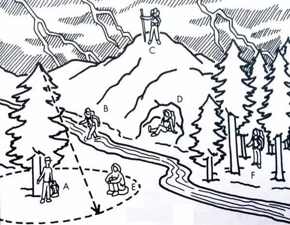 A、B、C、D、E,是雷雨天户外避雷的几个地点!