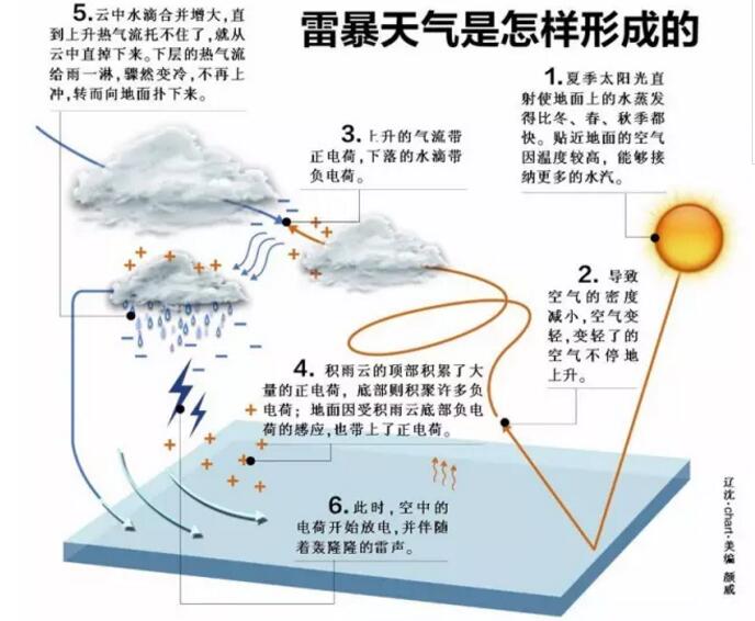 闪电是一种自然现象,通常是暴风云(积雨云)产生电荷,底层为阴电,顶层为阳电,而且还在地面产生阳电荷,如影随形地跟着云移动。