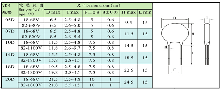 07D系列压敏电阻应用于各种小型的通讯模块、电源和家电等产品中