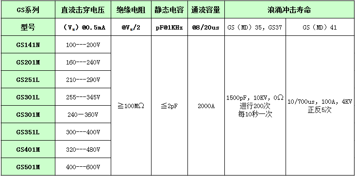 电流承受能力强:2000A (8/20μs)500A (10/700μs)静电容量小于2pF(1kHz),反应灵敏,钳制电压接近其直流转折电压,从而能及时有效地吸收瞬间高电压,动作速度明显优于普通气体放电管和其它保护单元。更新换代容易,可直接替代LC滤波组件、热敏电阻、压敏电阻极其它过电压保护器件。体积小,价格低廉,脉冲寿命长。