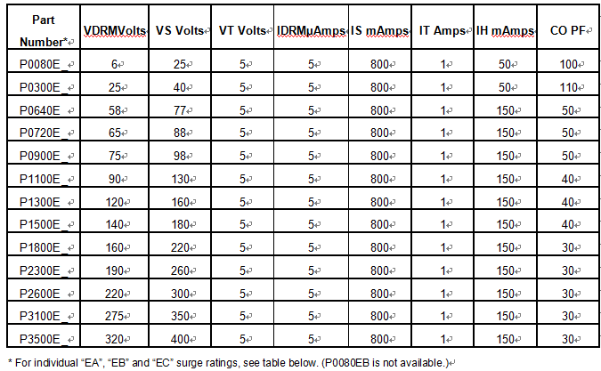 ●Listed SIDACtors are bi-directional. All electrical parameters & surge ratings apply to forward and reverse polarities.