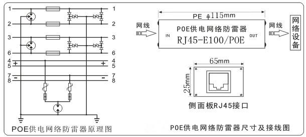 POE以太网电涌保护器参照国家标准GB/T18802.21-2004/IEC61643-21:2000设计。适用于对以太网供电线路的数据线和供电电源设备进行浪涌保护的复合防雷器,内部结构包含数据线和电源线两种保护方案,确保系统过电压精确防护,使其免受感应过电压、操作过电压和静电放电等所造成的损坏;同时带有不同电压等级的信号电源的防雷保护。